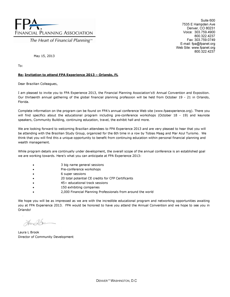 - Participação no congresso FPA Experience de 19–21 Outubro