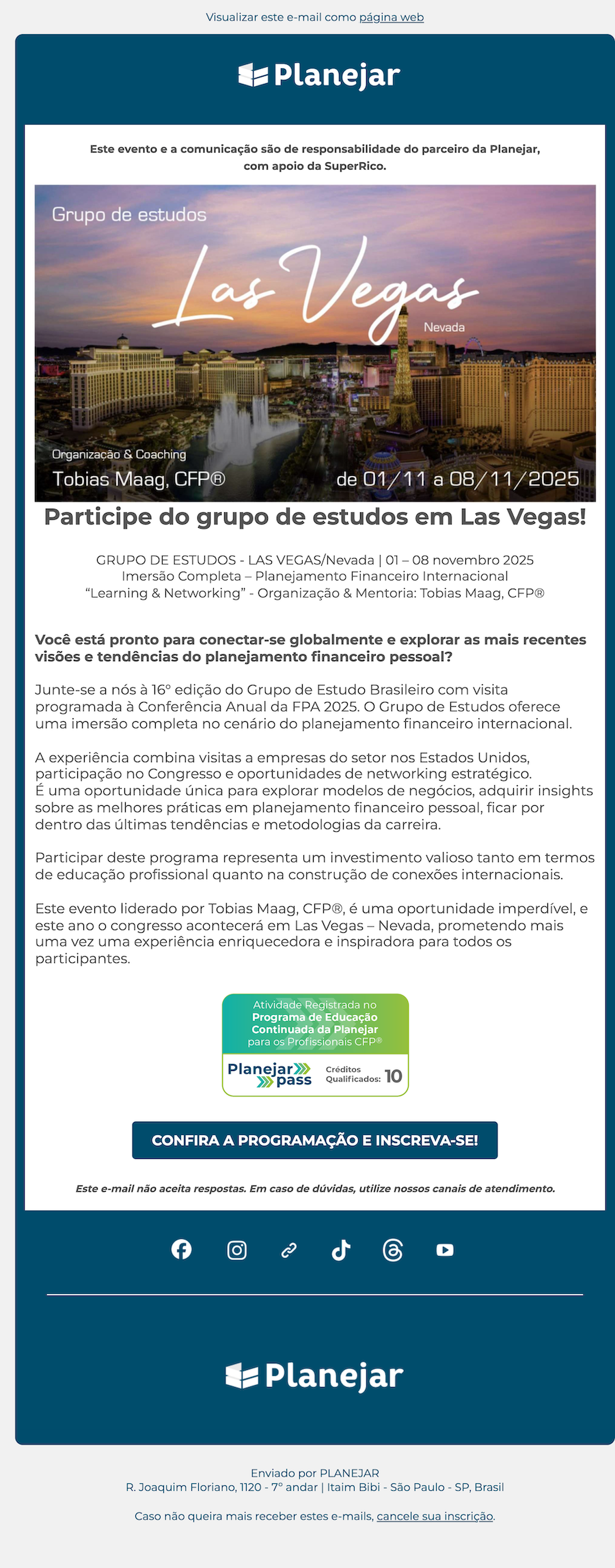- Acesso a todas as palestras e atividades do FPA Congress 2025, com taxa preferencial para os integrantes do Grupo de Estudos.